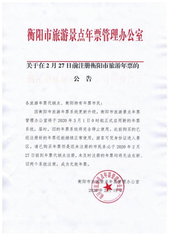 3月1日起衡陽市正式啟用新的旅游年票系統