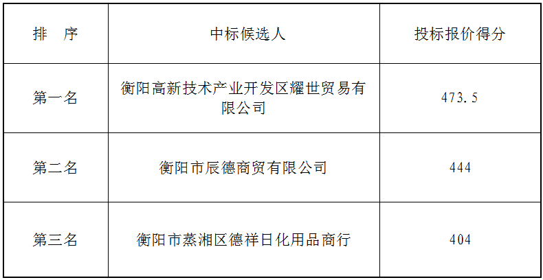 衡陽市衡府賓館有限公司(養正園)賓館客房用品(水果、副食類)公開比選候選人公示