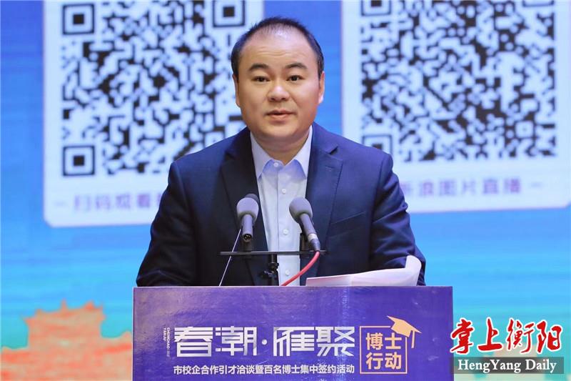 4月29日上午,“春潮·雁聚”博士行動——市校企合作引才洽談暨百名博士集中簽約活動在衡舉行,市委書記鄧群策在簽約儀式上向五湖四海的人才發出誠摯邀請,期望各位才俊用所學所得的智慧之光,照亮深入推進“一體兩翼”建設的騰飛之城,在衡陽這片高質量發展的熱土上成就輝煌事業、書寫精彩人生。市委副書記、市長朱健主持簽約儀式。