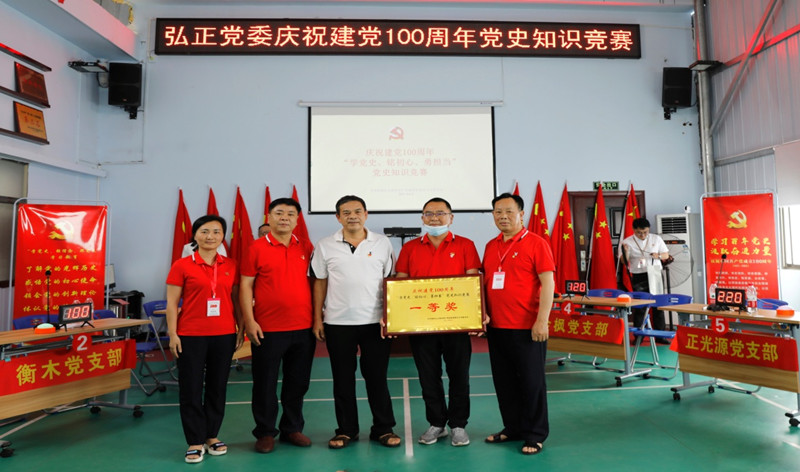 這次比賽由弘正公司黨委主辦,華翔黨支部承辦,主要是為了檢驗前一段時間各支部學習黨史的成效。比賽現場氣氛緊張而熱烈,各代表隊陣容整齊、精神飽滿、認真作答,展示出軋實的黨史學習成效。為了主持好這次比賽,黨委書記尤永進從《中共黨史知識1000題》選取150多道題目,仔細研究,做好注解,隨機分成3組作為預賽和決賽題目。在主持比賽過程中,對每一道題目的來龍去脈、所涵蓋的知識點和相關聯的小故事,娓娓道來,說明闡述。這次不僅是一次黨史知識競賽,更是一堂學習黨史的精彩黨課。營造了慶祝建黨100周年和黨史學習教育的濃厚氛圍。