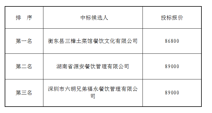 衡陽市衡府賓館有限公司(養正園)食堂勞務公開比選候選人公示