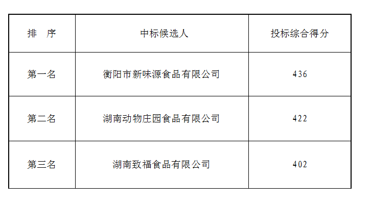 衡陽弘湘食堂食材(肉類)公開比選候選人公示