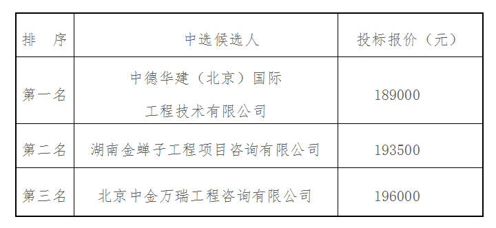 弘福雅苑項目可研服務單位采購于2022年3月25日上午9時00分(北京時間)進行了比選開標、評標活動,本項目采用“低價中標法”,經評審小組綜合評審,現將中選候選人排名結果公示如下: