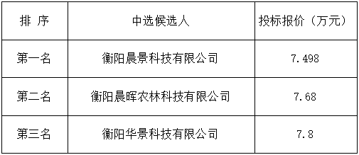 衡陽市2023年度十六、十七批次建設用地項目采伐作業設計服務單位比選于2023年7月18日上午9時00分(北京時間)進行了比選開標、評標活動,評標委員會按照比選文件規定的評標辦法及原則進行評定,推薦中選候選人排名如下: